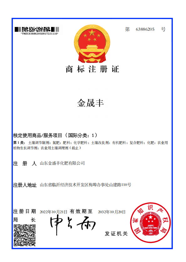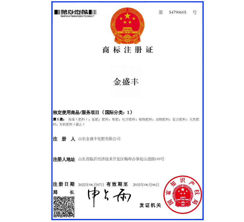 金盛豐注冊(cè)商標(biāo)證書(shū)