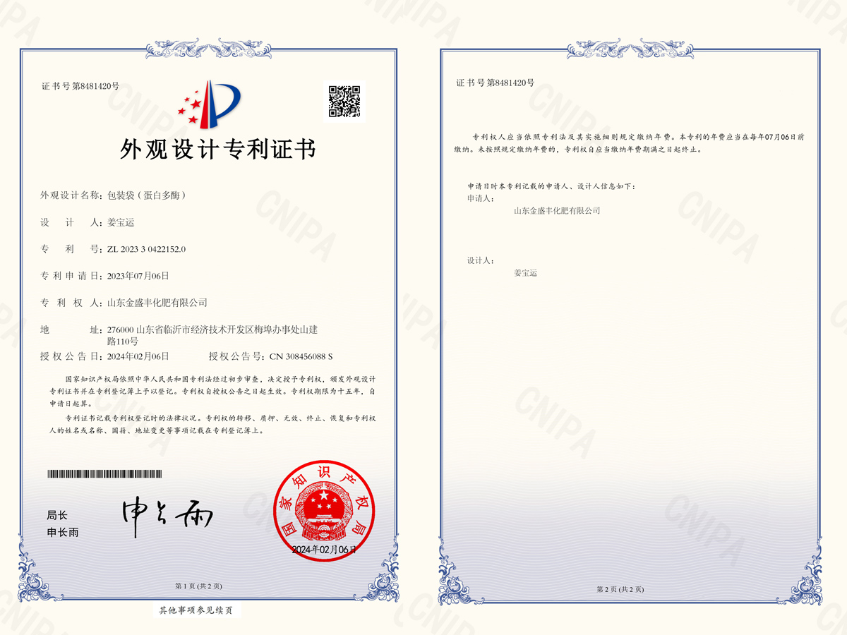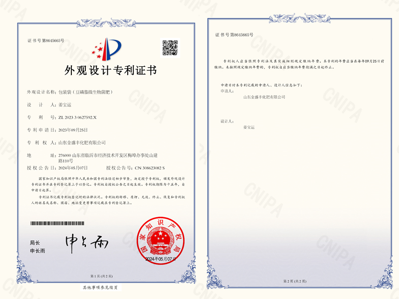 豆磷脂微生物菌肥(外觀設(shè)計(jì)專(zhuān)利證書(shū))
