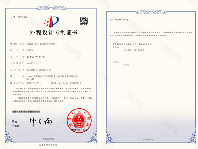聚谷氨酸微生物菌劑(外觀設(shè)計(jì)專(zhuān)利證書(shū))