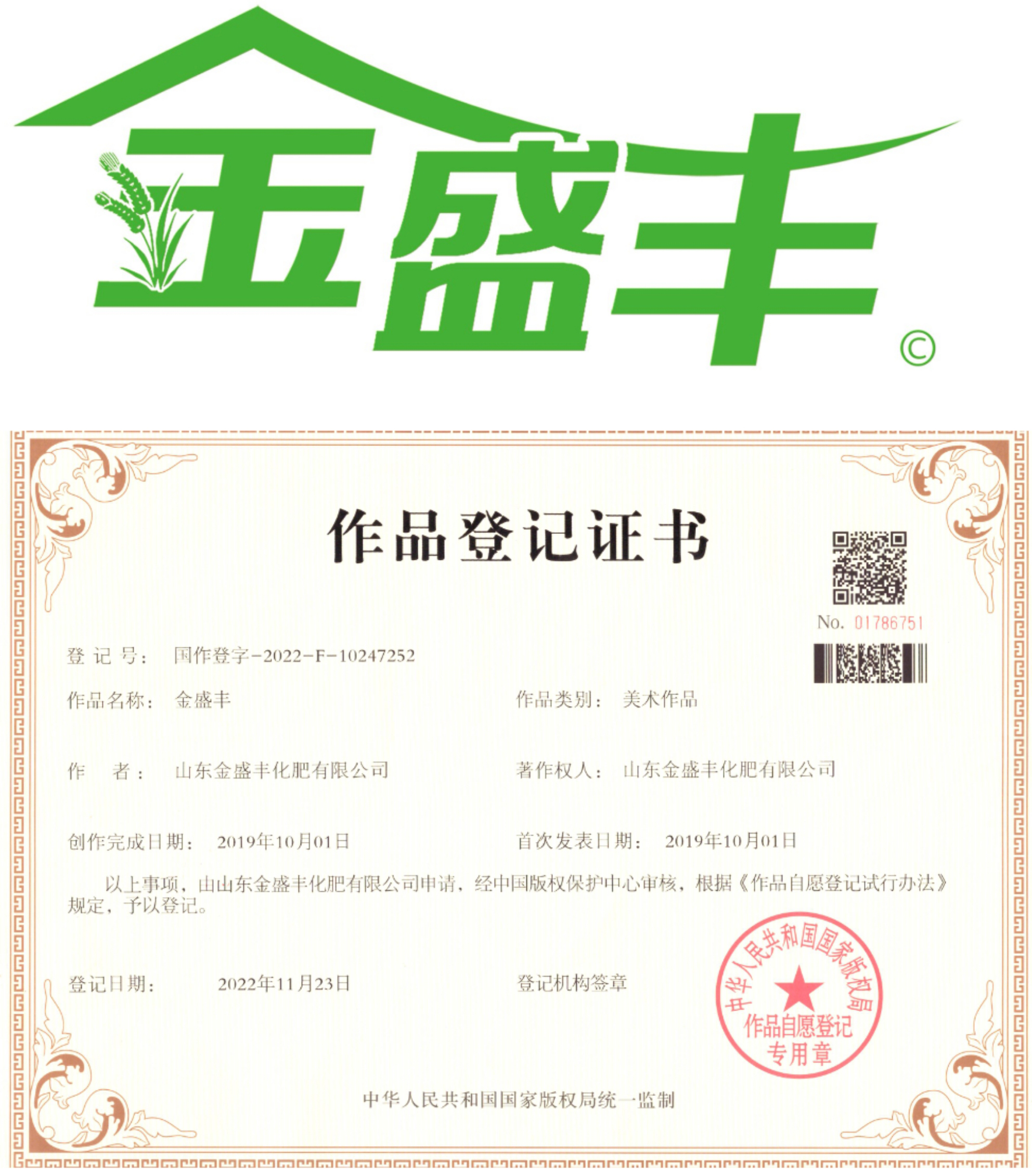 金盛豐 作品登記證書(shū)
