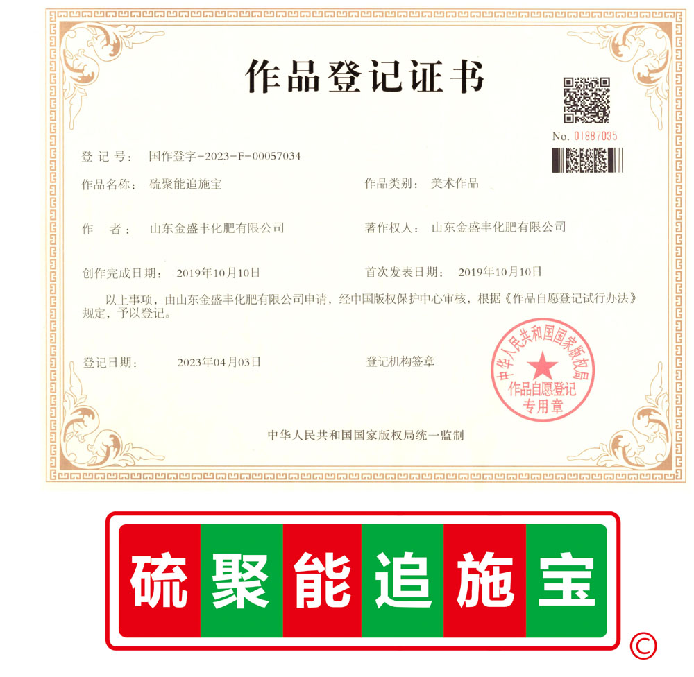 硫聚能追施寶作品登記證書(shū)